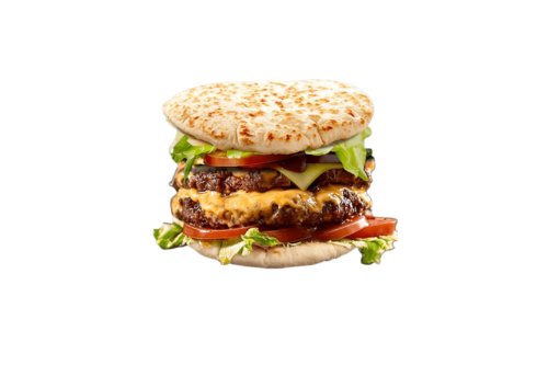 Naan + Crudités + 2 X Steak 80g + Cheddar + Œuf + Bacon + Aubergine .